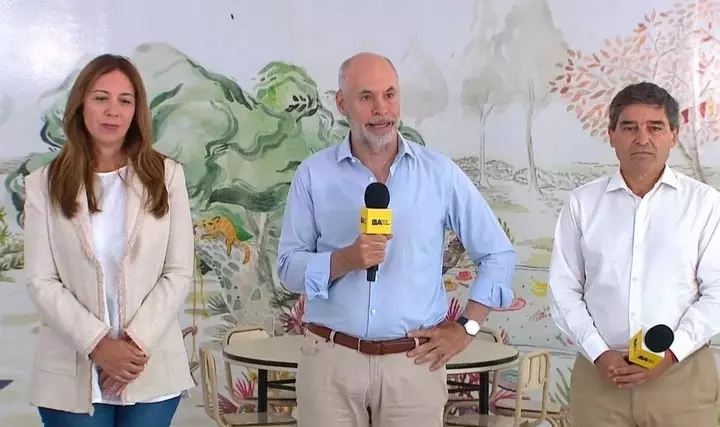 El jefe de Gobierno porteño estuvo secundado en el anuncio por el ministro de Salud de la Ciudad y precandidato a sucederlo, Fernán Quirós, y la diputada de la Ciudad y ex gobernadora bonaerense, María Eugenia Vidal.