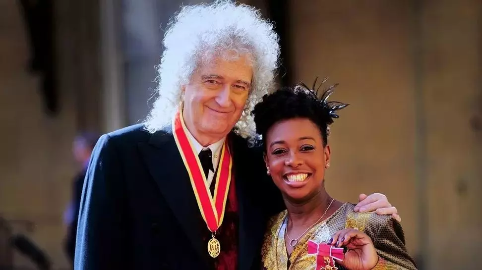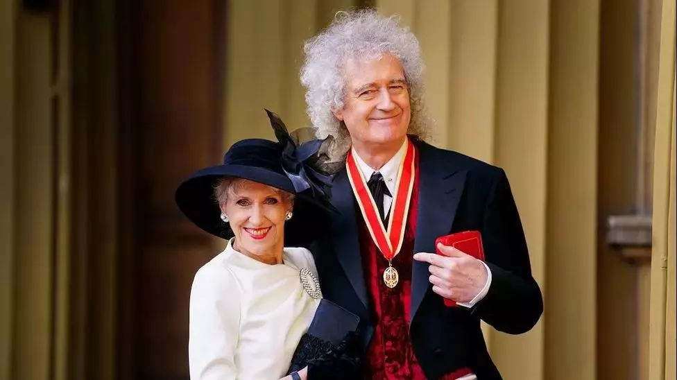 Menos de un año después de que la difunta Reina apareciera en la pantalla tocando el ritmo de «We Will Rock You» mientras tomaba el té con Paddington Bear, el hombre que escribió la canción, y cuya banda tomó de su majestad su nombre, asistió al Palacio de Buckingham para recibir el título de Caballero del Imperio Británico.