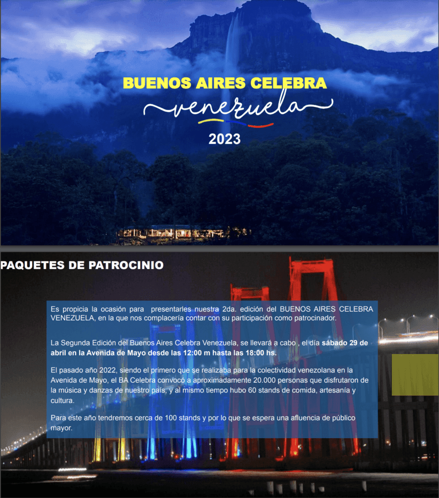 Emprendedores y empresarios venezolanos denunciaron el alto costo que cobrarían en el BA Celebra por un máximo de tres anuncios en la tarima, y es que la exhorbitante suma asciende a 180 mil pesos argentinos que al cambio para la fecha es de 450 dólares. «¿Cuál es la garantía del retorno de ese dinero?», se preguntó uno de los denunciantes, quien quiso omitir su identidad.
