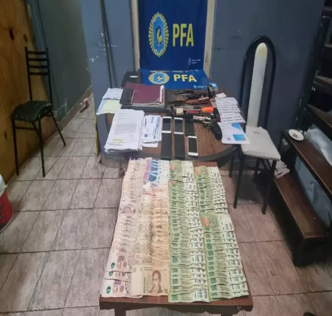 En el allanamiento se secuestraron diversos elementos de prueba, como teléfonos celulares, una réplica de plástico de un revólver, cuchillos, cortaplumas, registros de pasajeros, documentación de interés para la causa, preservativos y dinero en efectivo.