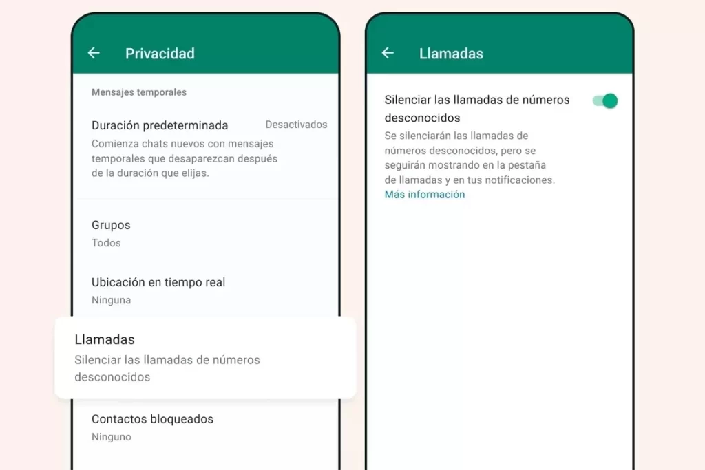 Para activar esta función, el usuario deberá entrar en la pestaña de Privacidad dentro de los ajustes en la app. Tras ello, seleccionar la opción de ‘Llamadas’ y elegir ‘Silenciar las llamadas de números desconocidos’.