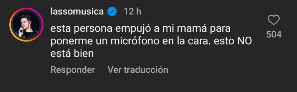 “Esta persona empujó a mi mamá para ponerme un micrófono en la cara. esto NO está bien”, explicó en un post del medio de entretenimiento.