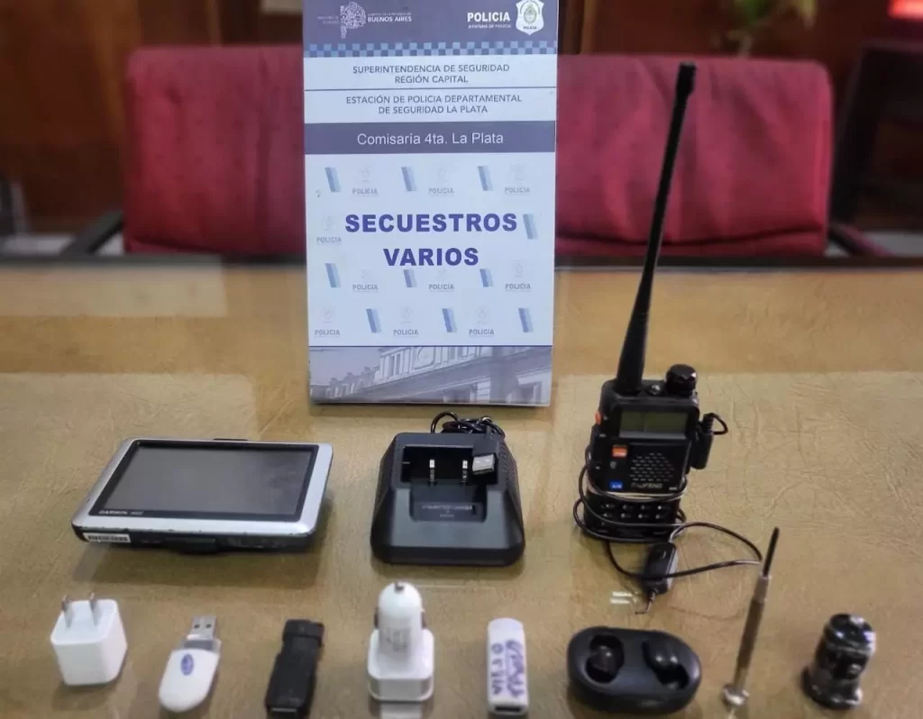 Además del aparato inhibidor, se decomisaron otros elementos relacionados con la presunta actividad delictiva. Entre ellos se encontraban un GPS de la marca Garmine, auriculares inalámbricos de color negro sin una marca visible, tres memorias USB y tres cargadores portátiles para celulares.