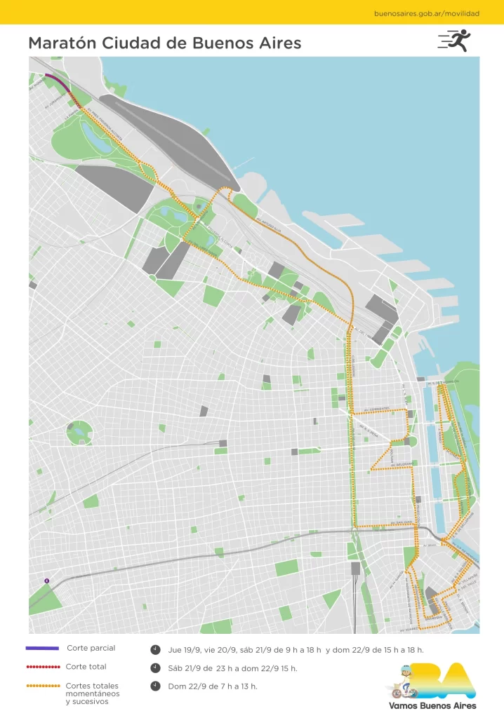 La Secretaría de Transporte informó cuáles serán las calles y los accesos comprometidos durante el domingo 24 de septiembre por la Maratón 42K de la Ciudad.