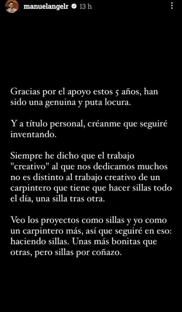 «El resumen es sencillo: Desde hace tiempo sentimos que nos estamos repitiendo y que ya era hora de replantear el proyecto, y yo creo que las reinvenciones no pasan por seguir haciendo lo mismo pero cambiando un par de cosas, sino parando por completo para hacer cosas nuevas.