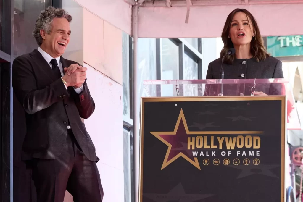 El actor Mark Ruffalo fue homenajeado el jueves con una estrella en el Paseo de la Fama de Hollywood en una ceremonia en la que tuvo un emotivo reencuentro con su excompañera de elenco Jennifer Garner.