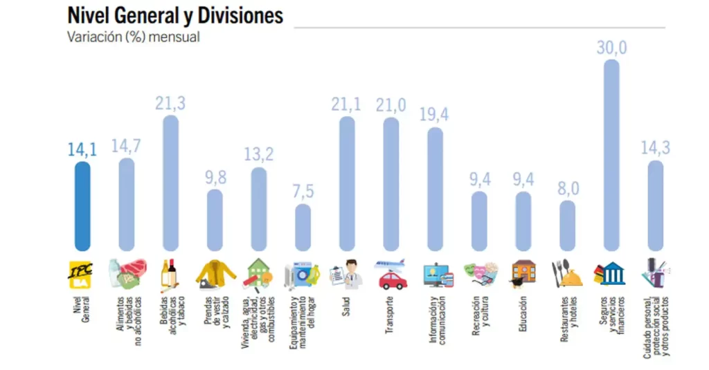 - Transporte registró un alza del 21% por el aumento en las tarifas de colectivos y de los precios de los combustibles.
