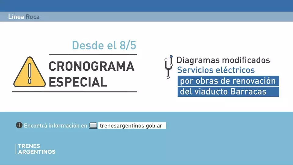 El tren Roca reduce un 30% la frecuencia durante tres semanas a partir de este miércoles 8 de mayo, informaron desde la empresa Trenes Argentinos. El ferrocarril va a circular con un diagrama especial por la renovación del viaducto Barracas.