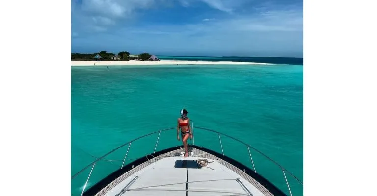 Sin embargo, para sorpresa de muchos usuarios y para otros no tanto, el paraíso natural, a donde decidió viajar el 23 de mayo de 2024, se trata de Los Roques, en Venezuela, lugar en el cual lució al natural con un traje de baño marrón.