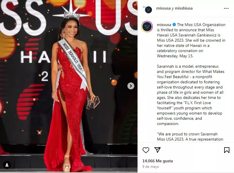 Gankiewicz fue coronada como la nueva Miss USA en Waikiki a principios de este mes, sustituyendo a la anterior, Noelia Voigt, quien anunció su renuncia el 6 de mayo.