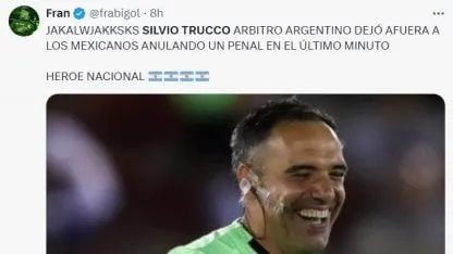 El árbitro argentino Silvio Trucco, protagonista por su intervención desde el VAR en el final del partido, que terminó con un penal anulado a México.
