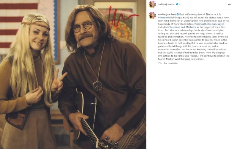 “Descansa en paz amigo mío. El increíble Martin Mull nos dejó para su eterno descanso. Tengo muy buenos recuerdos de trabajar con él y de estar asombrada por su enorme trabajo que antes de Sabrina, la bruja adolescente, incluía a Roseanne y MrMom”.