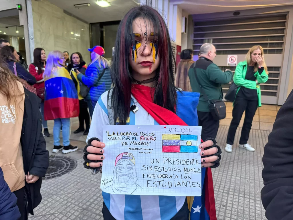 Venezolanos con pancartas, actas en manos, rostros pintados y banderas tanto de Venezuela como de Argentina se han apostado para manifestar su deseos de lucha.