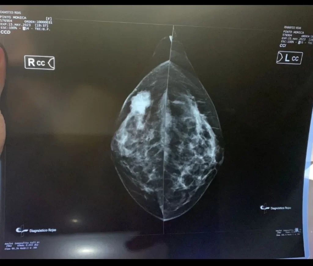 La vida de Mónica Pinto cambió desde octubre del año 2021, cuando sintió una molestia en el seno, por lo que se autoexaminó y se dio cuenta que tenía algo extraño, sin embargo, en enero del 2023 fue cuando le inició un fuerte dolor en la zona decidió ir a consulta, le mandaron a hacer unos estudios y arrojó un tumor benigno.