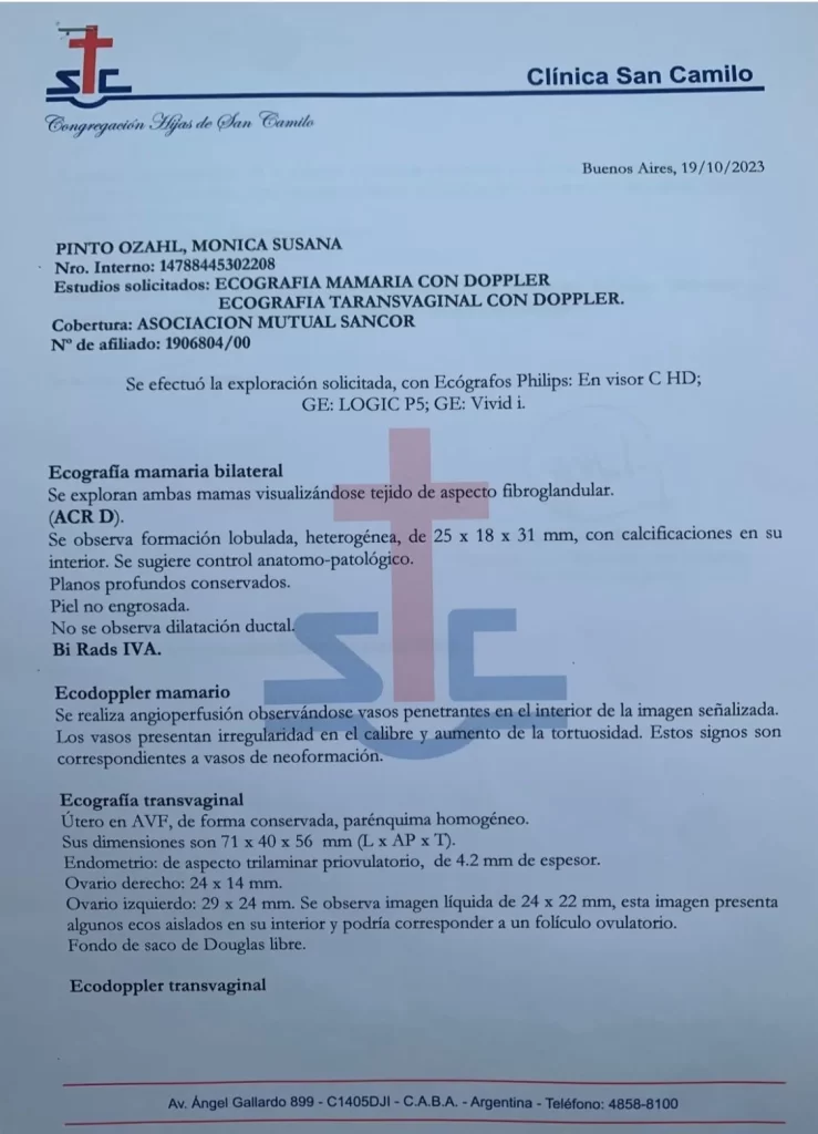 Pasaron unos meses y el tumor comenzó a crecer, entonces la psicóloga venezolana, decidió ir a dos ginecólogos «donde me hicieron mala praxis en diagnósticos hasta que fui a una mastóloga y me lo diagnosticó con estudios pertinentes».