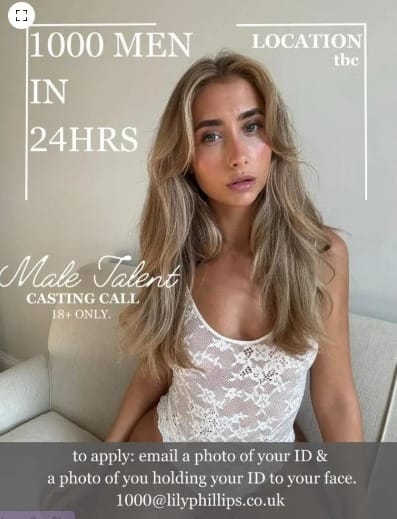 La estrella de OnlyFans, Lily Phillips, está ultimando los detalles para lo que será su «obra más espectacular» hasta la fecha: tener sexo con 1.000 hombres en 24 horas y así lograr un nuevo récord mundial.