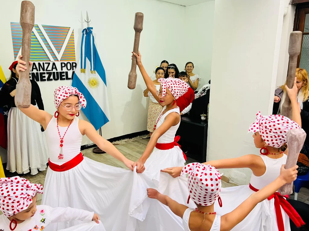 El Arepazo Patrio incluyó una representación artística de las piloneras, a cargo de la Agrupación Aguaitacaminos y el Estudio de Danzas TAGOPI, así como una charla con representantes de una empresa reconocida de harina de maíz, quienes explicaron cómo la migración venezolana ha diversificado la producción en Argentina.