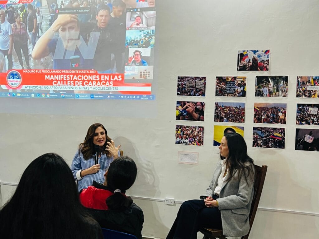 Claudia Macero, coordinadora de comunicaciones del Comando ConVzla, recordó la persecución sufrida en la campaña electoral, cuando ella tuvo que refugiarse en la embajada de Argentina y uno de sus periodistas, Gabriel González, fue detenido arbitrariamente.