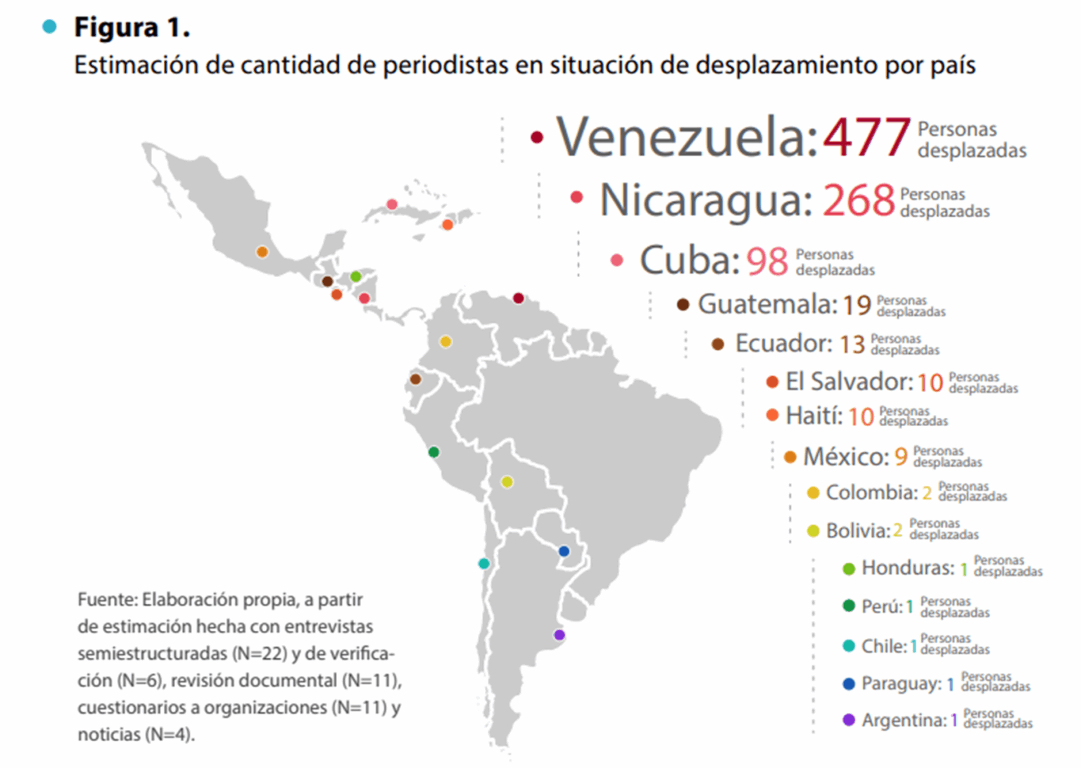 El informe subraya que los datos recogen únicamente los casos de desplazamiento forzado vinculados directamente con el ejercicio del periodismo, por lo que la cifra real podría ser mucho mayor, al no incluir a quienes emigraron por razones económicas, sociales u otras motivaciones políticas.