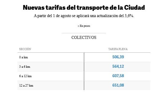 El nuevo cuadro tarifario en las 30 líneas gestionadas por la Ciudad establece los siguientes valores: