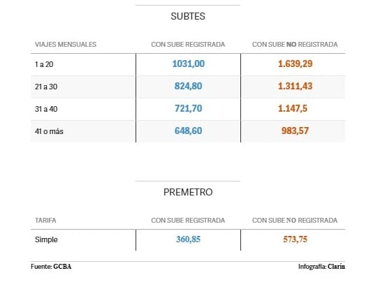 En hora no pico, los valores serán de $2.957,54 y $1.232,19, respectivamente.