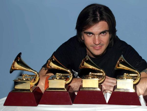 Juanes posó al lado de las cinco estatuillas que se llevó en el 2003.