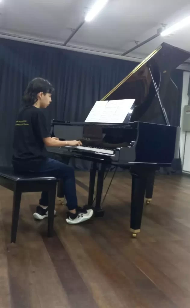 Actualmente forma parte de la Escuela de Música Villa-Lobos en Brasil, donde estudia piano con la profesora Michelle y violín con Pedro.