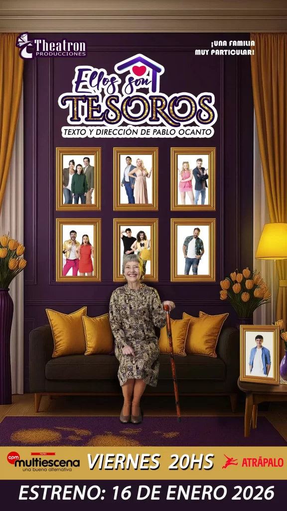 Mañana, 16 de enero, la comedia teatral “Ellos son Tesoros” estrena su tercera temporada en el Teatro Multiescenas, ubicado en la avenida Corrientes 1764, en la ciudad de Buenos Aires. La obra, escrita y dirigida por Pablo Ocanto, regresa a escena tras el éxito de sus temporadas anteriores, bajo la producción de Theatron Producciones.