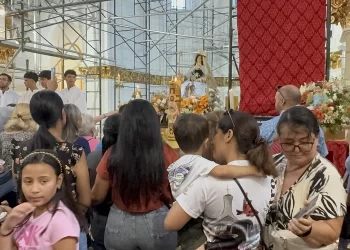 Acompañada de su rebaño, la imagen de la Divina Pastora recorrió 5,8 kilómetros desde la parroquia Caacupé hasta la Catedral ...